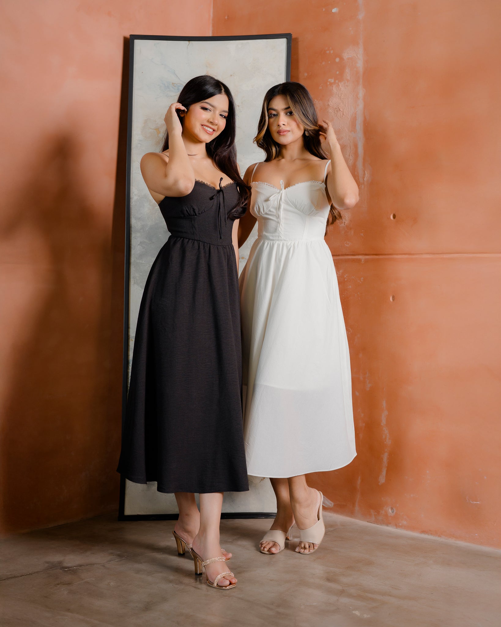 Elevate your wardrobe with this striking corset-style criss cross dress in classic black. The structured corset bodice provides exceptional support and definition, while the dramatic criss cross detailing creates visual interest and a flattering silhouette. Perfect for evening events, nights out, or when you want to make a confident statement. The timeless black hue ensures versatility, pairing effortlessly with heels, boots, or accessories. A sophisticated choice for those who appreciate bold, fashion-forward design with enduring appeal.