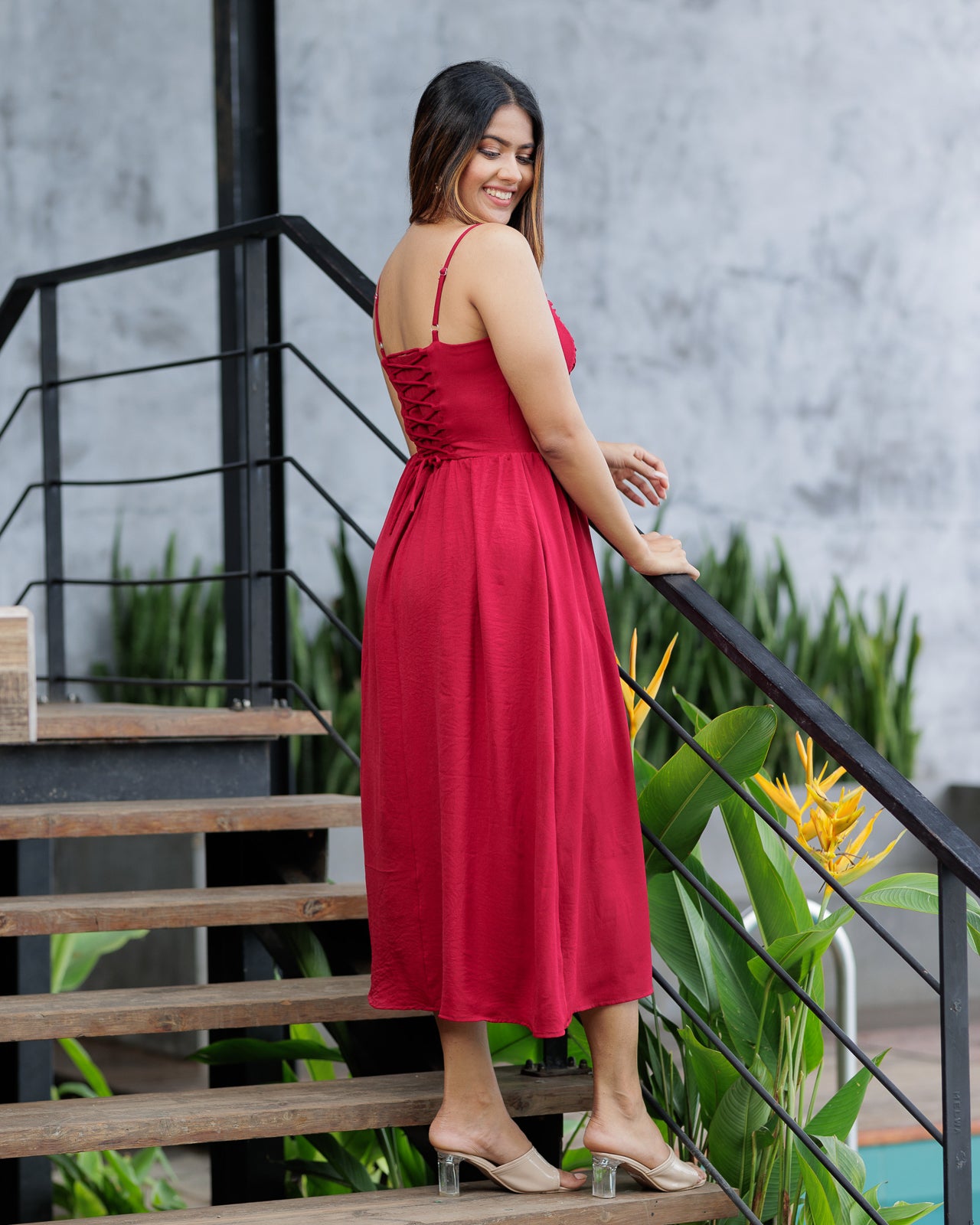 Criss Cross Tie Up Back Strappy Maxi Dress