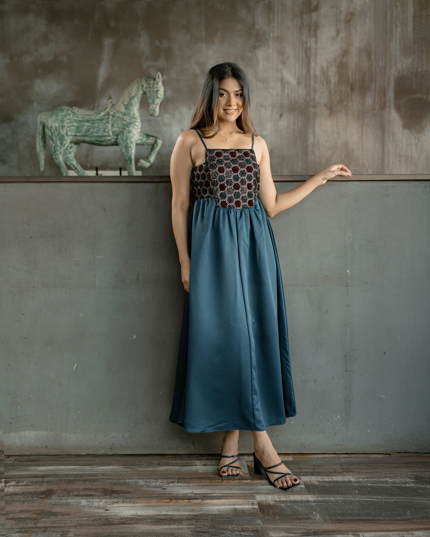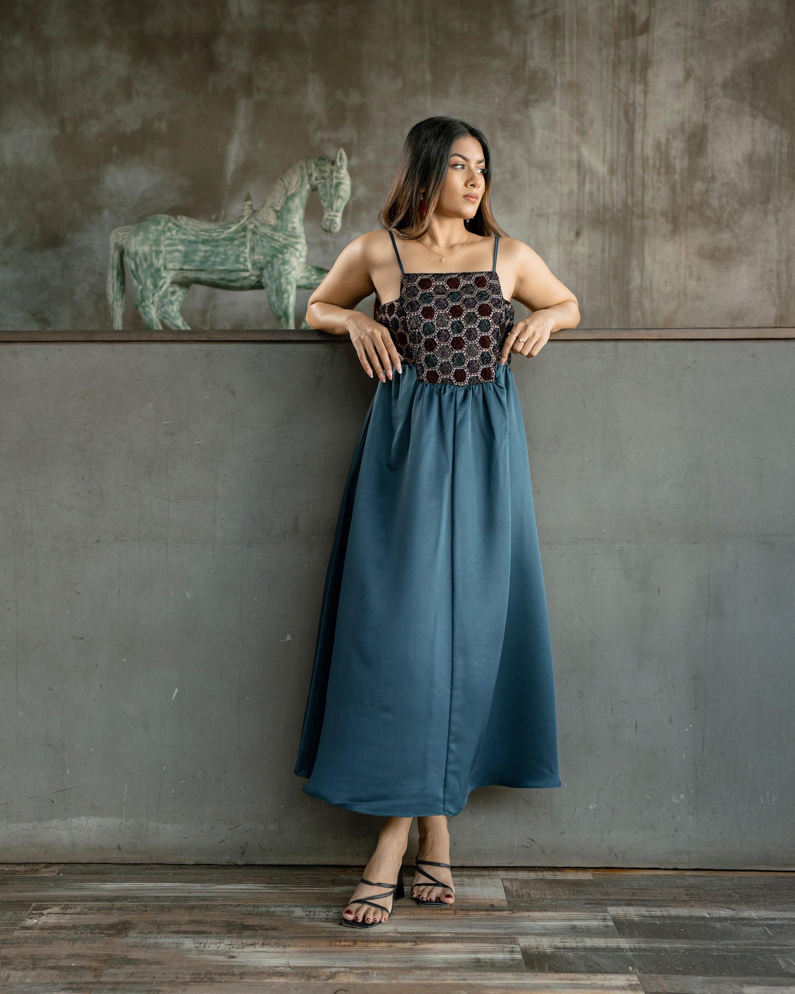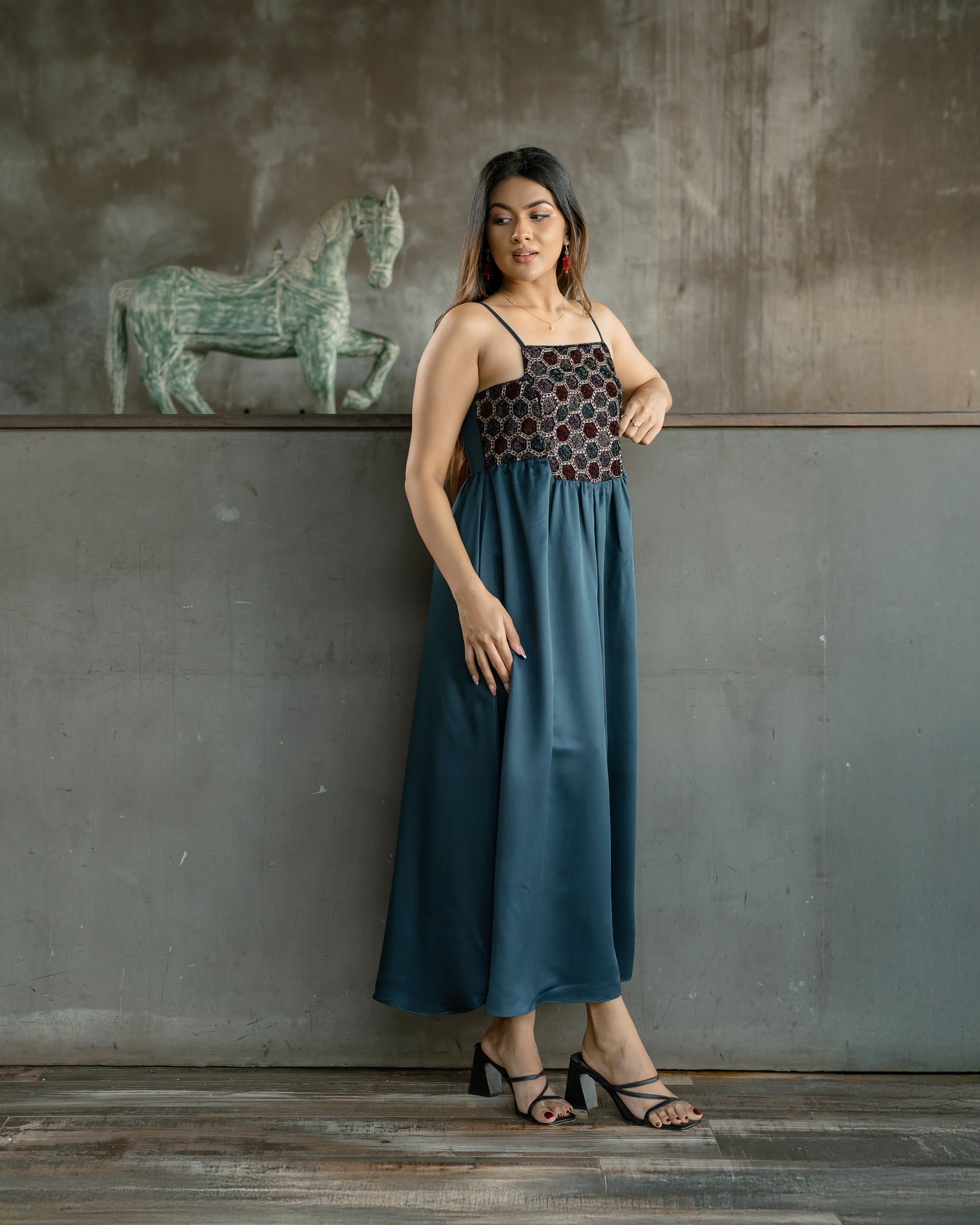 Elevate your evening wardrobe with this sophisticated strappy dress, featuring refined gold detailing that catches the light with understated elegance. The adjustable straps provide a secure, customizable fit, while the streamlined silhouette flatters the figure. Crafted for occasions demanding polished style, this piece transitions seamlessly from cocktail events to upscale dinners. The gold accents add a touch of luxury without overwhelming the design, making it a versatile investment for your formal collection.