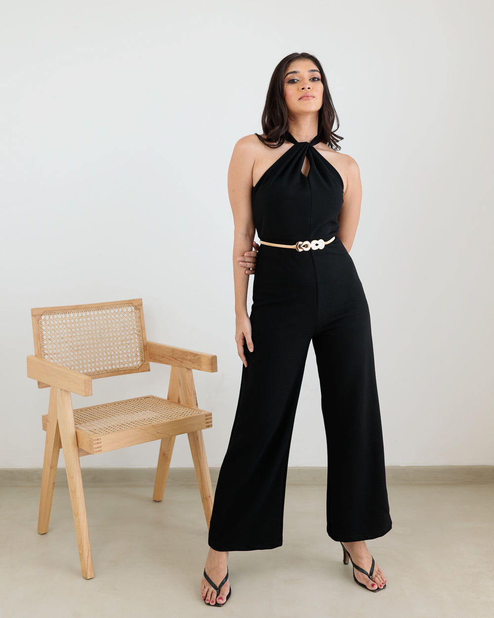 This elegant Halter Neck Long Jumpsuit in black is perfect for any formal or semi-formal occasion. The halter neck design creates a sophisticated and modern look, while the long silhouette adds a touch of glamour. The perfect blend of style and comfort, this jumpsuit is a must-have in any fashion-forward wardrobe.