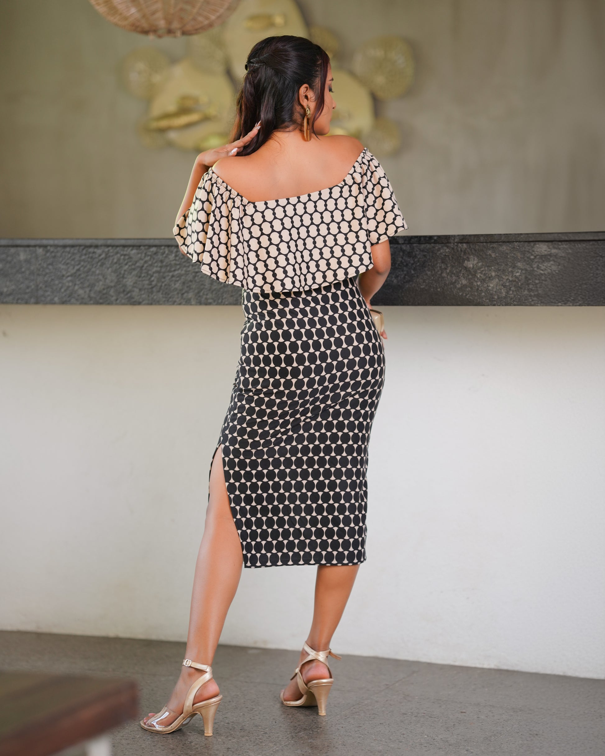 Expertly designed, the Off Shoulder Ruffle Trim Bodycon Dress is a stylish and flattering addition to any wardrobe. With its off shoulder design and ruffle trim, this dress exudes femininity and elegance. Crafted with high quality materials, it offers both comfort and style. Perfect for any occasion, this dress is a must-have for fashion-forward individuals.