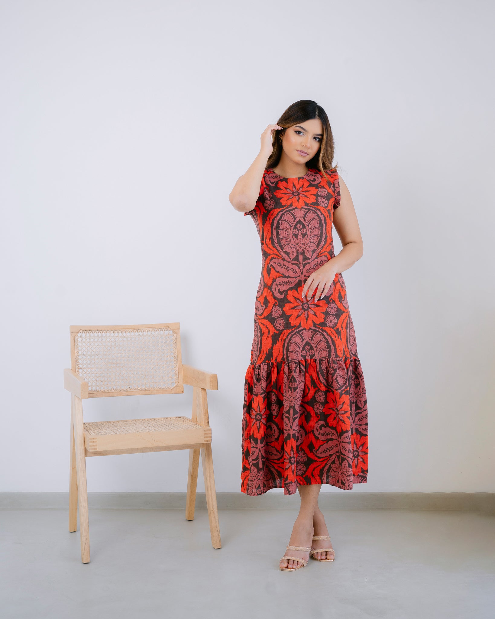 This dress features a playful ruffled hem and unique sleeve details, elevating any outfit with its chic and feminine design. The perfect addition to any wardrobe, this dress adds a touch of fun and sophistication to any occasion.