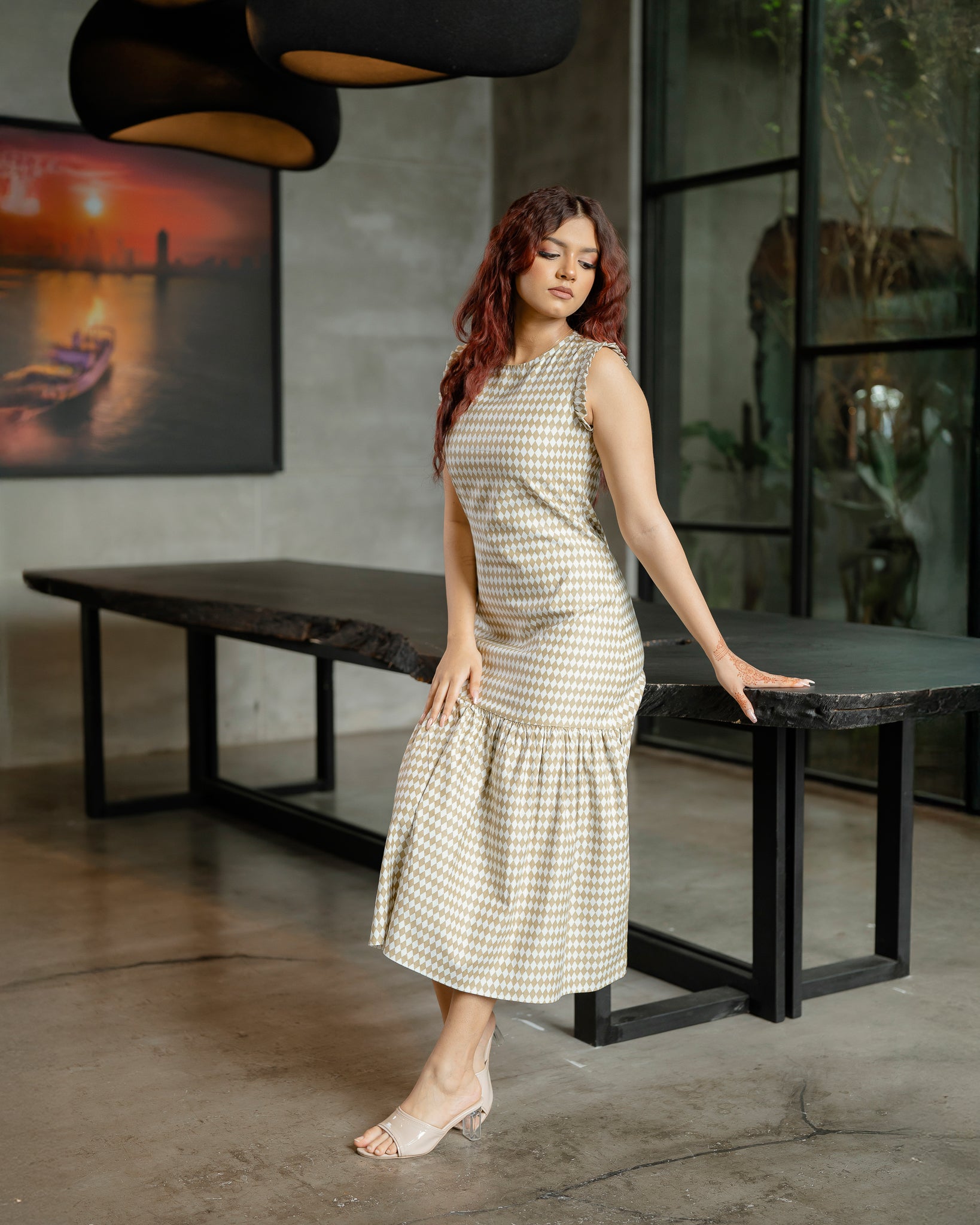 This Ruffled Hem Printed Long Dress combines elegant design with comfortable wearability. Featuring a delicate ruffled hem, it adds a subtle flair to your silhouette, while the printed fabric offers a timeless aesthetic. Ideal for both casual outings and special occasions, this dress provides a refined look with effortless style. Crafted to ensure a flattering fit, it enhances your natural shape while allowing ease of movement throughout the day.