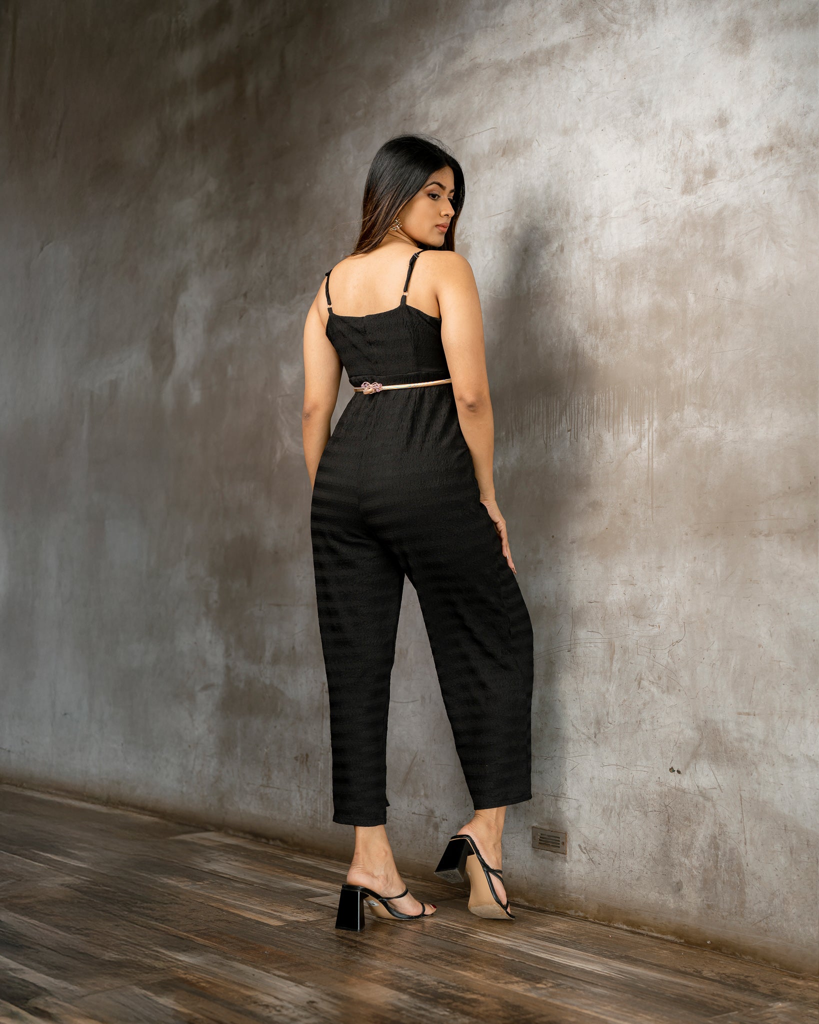 Elevate your wardrobe with this sophisticated strappy jumpsuit, designed for the modern woman who values both style and versatility. The adjustable straps provide a customizable fit that flatters various body types, while the streamlined silhouette creates an elongated, polished appearance. Perfect for transitioning from office to evening events, this piece combines contemporary design with practical comfort. The structured fabric maintains its shape throughout the day, ensuring you look impeccable from morning meetings to night-out occasions. A timeless investment piece that works seamlessly with minimal accessories or layered styling.