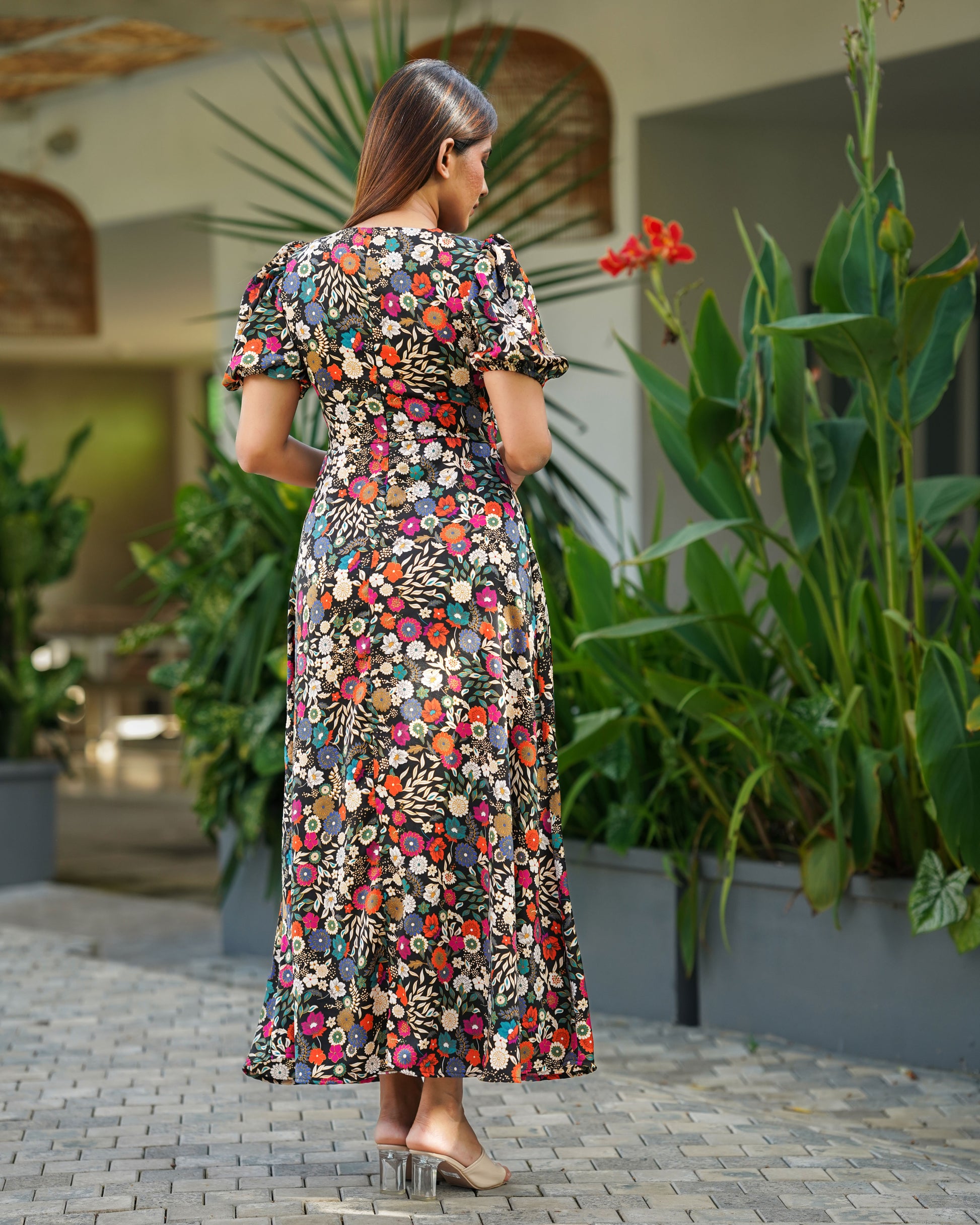 This Waist Gathers Printed Maxi Dress is designed for comfort and style. The waist gathers provide a flattering silhouette, while the print adds a touch of unique sophistication. Made with high-quality materials, this dress is perfect for any occasion. Look and feel your best in this must-have addition to your wardrobe.